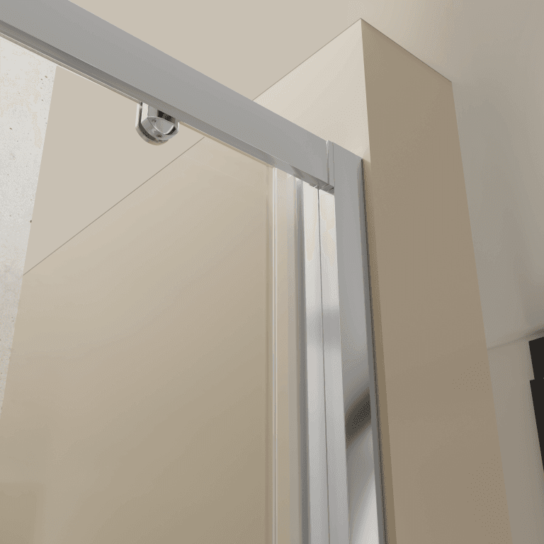 La perfilería de aluminio anodizado en cromo brillo o negro mate le da un toque moderno y sofisticado, adaptándose a distintos estilos de decoración. El tratamiento antical marca la diferencia, evitando que las gotas de agua se adhieran al cristal y facilitando la limpieza.